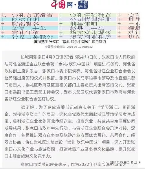 原标题:集团总载成“老赖”企业被三次公示失信 近日,有网友发布消息称,“张家口‘崇礼欢乐中国城’项目签约仪式上曾发表讲话的一集团公司总裁赖海波竟然成了老赖”。 据张家口日报2016年4月9日头版报道,4月7日上午,“崇礼·欢乐中国城”项目签约仪式进行。现场图片显示,“河北天成企业集团总裁赖海波先生对‘崇礼欢乐中国城’项目做了介绍”。 全国法院失信被执行人名单信息公布与查询系统信息显示,被执行人赖海波,2017年8月15日被列入“老赖”名单,失信被执行人行为具体情形一栏显示:有履行能力而拒不履行生效法律文书确定义务。 通过检索网络信息,赖海波为总裁的河北天成企业集团下的河北天成房地产开发有限公司曾多次被多名债权人发贴举报索要欠款。 近日,有媒体记者从河北省邯郸市警方获悉,赖海波所在的企业河北天成房地产开发有限公司法人代表曾被河北省武安市一债权人举报,武安警方对其已以涉嫌合同诈骗罪立案。 集团总裁成“老赖” 近日,有网友发布消息称,与河北崇礼进行项目合作的签约仪式上“公司总裁成老赖”。记者查询发现,公开报道显示,2016年4月7日上午,关于“崇礼欢乐中国城”项目签约仪式举行,张家口市副市长武卫东代表张家口市政府与河北省浙江企业联合会签订协议。 双方协商,将在崇礼区选址建设“崇礼·欢乐中国城”项目,深入开发张家口市文化产业与旅游资源,打造冰雪产业及冬奥文化品牌,提升张家口市综合旅游文化竞争力。 报道中称,河北省浙江企业联合会会长赵勇强在签约仪式上表示,希望通过双方合作,将“崇礼·欢乐中国城”项目打造为拉动区域经济、文化发展等各个领域进步的引擎,为推动冰雪运动的普及和产业的发展。 签约仪式上,“河北天成企业集团总裁赖海波先生对‘崇礼欢乐中国城’项目做了介绍”。河北天成企业集团官方网站上贴出签约仪式现场图片。 签约仪式过去近1年半后,彼时做项目介绍的总裁赖海波被指“成了老赖”。